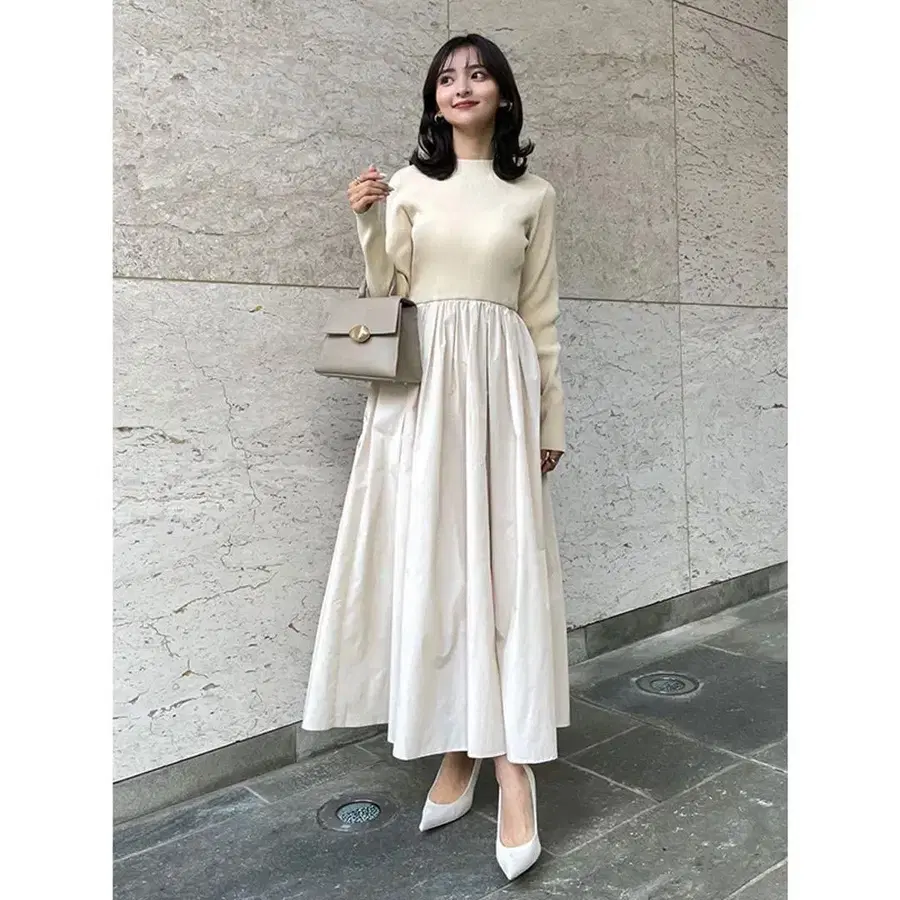 완판템 아뉴앙스 니트 도킹 타프타 원피스 롱