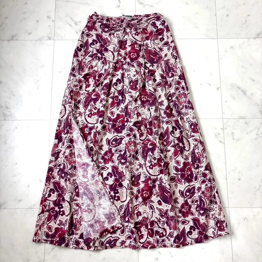 45rpm 롱 스커트 꽃무늬 염색 랩스커트 턱 랩 스커트