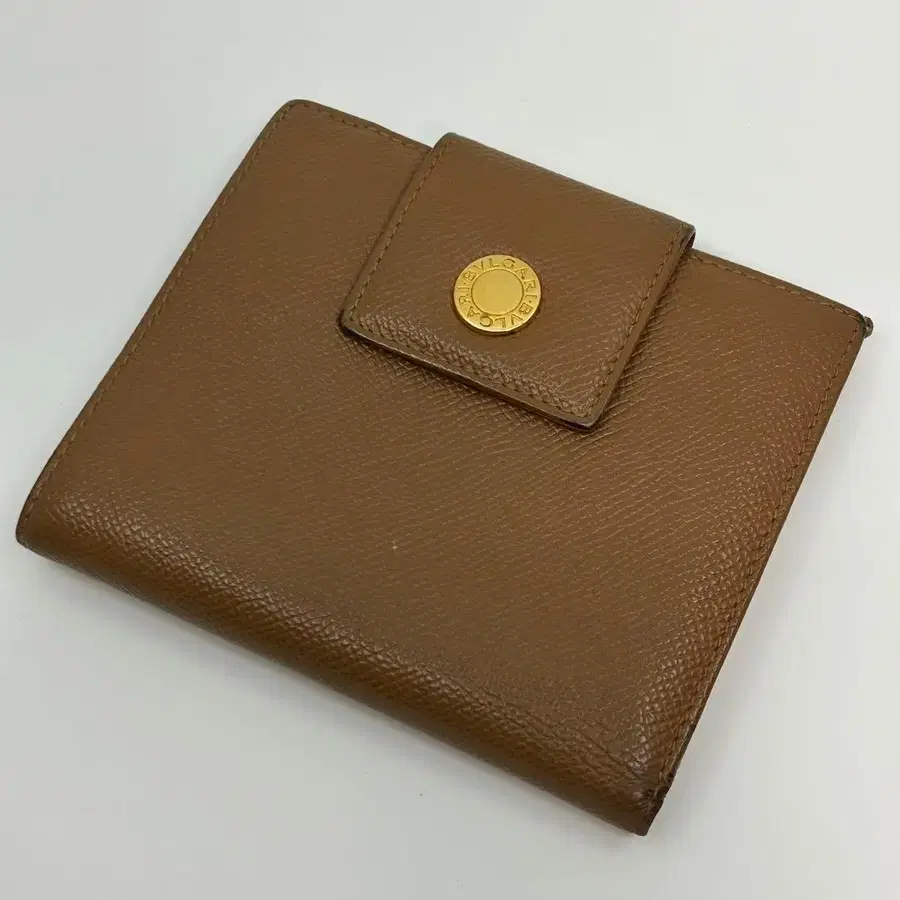 불가리 지갑 이단 접이 브라운 가죽