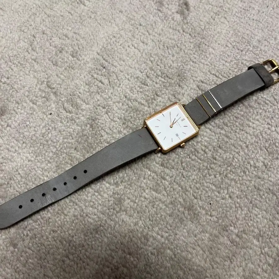 ROSEFIELD 그레이 가죽 스퀘어형 손목시계