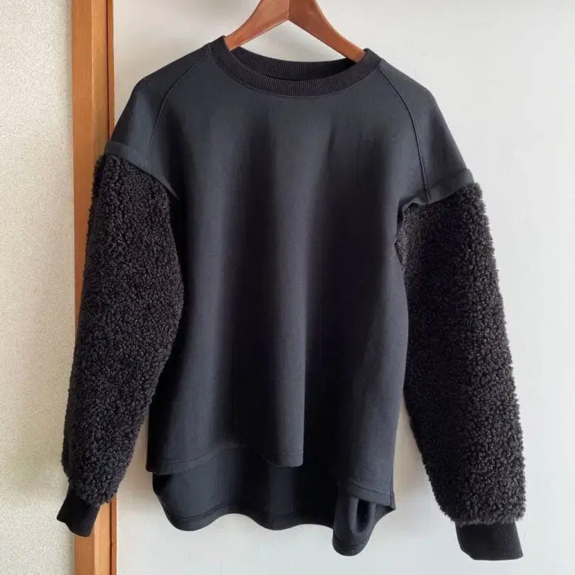 [ 새상품 ] 이소재 콤비 소매 푸들 니트 블랙 트레이닝복