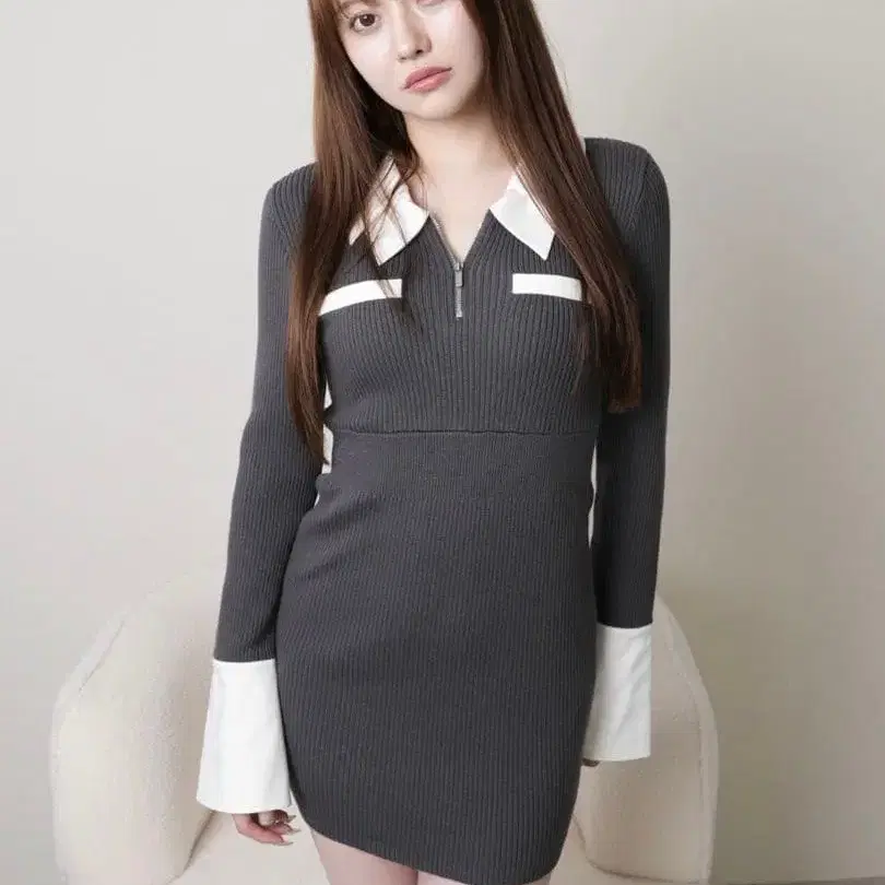 ripservice 더블 컬러 클래시컬 니트 원피스