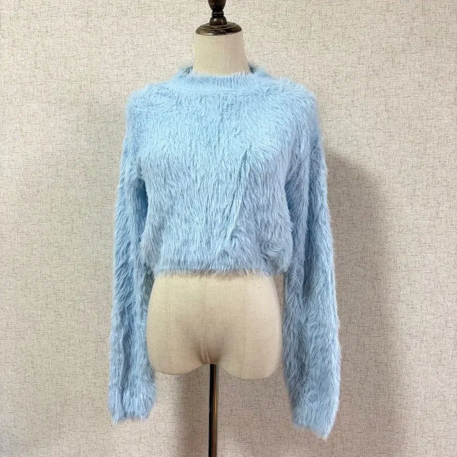 라이트 블루 크롭 기장 퍼 니트 복슬복슬 니트