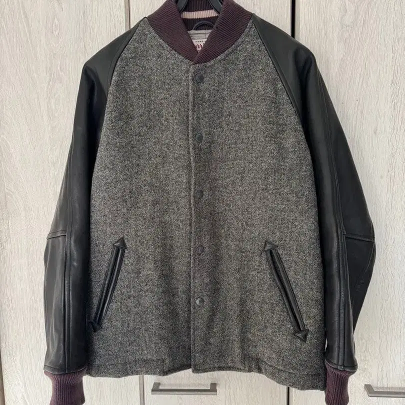 폴 스미스 해리스 트위드 울 가죽 바시티 자켓