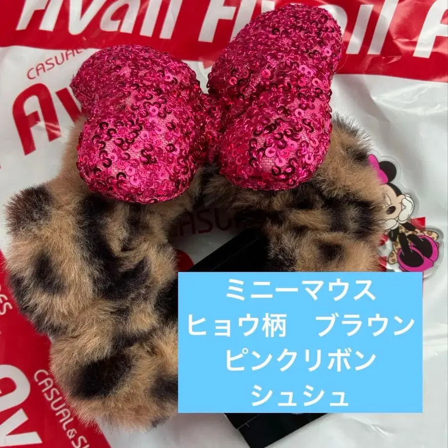 브라운 아베일 미니 마우스 레오파드 무늬 헤어 액세서리 스크런치