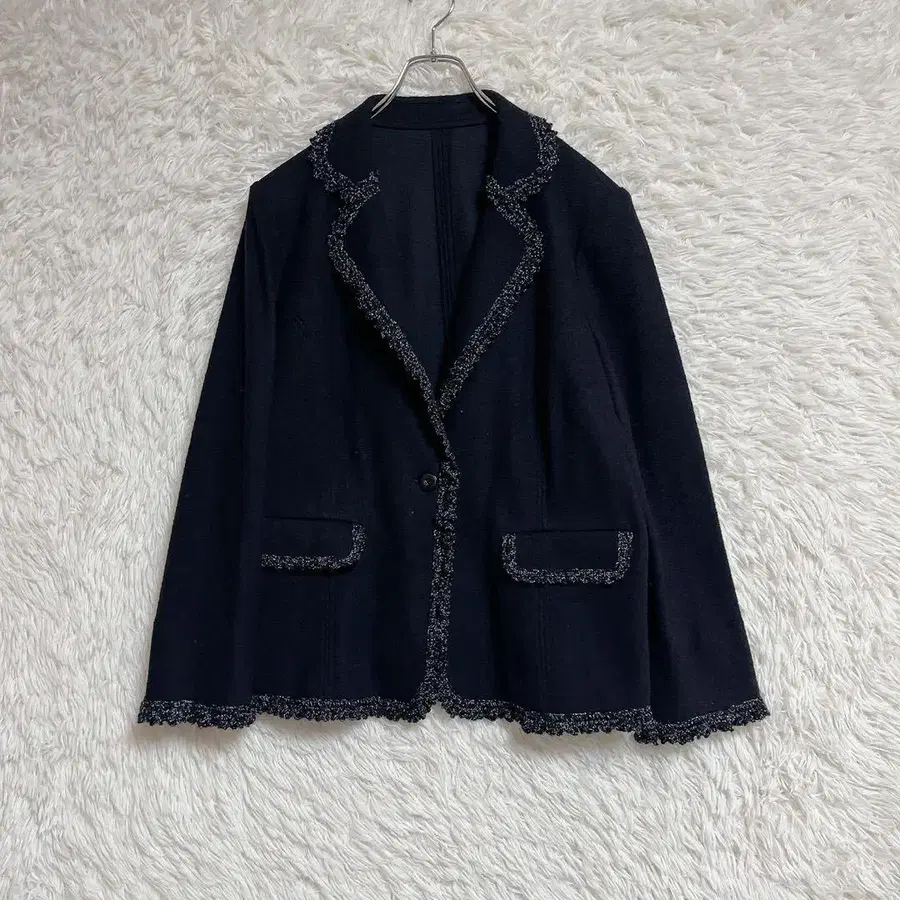 • [비터 시럽] 트위드 자켓 노카라 블랙 울 빅 사이즈 LL