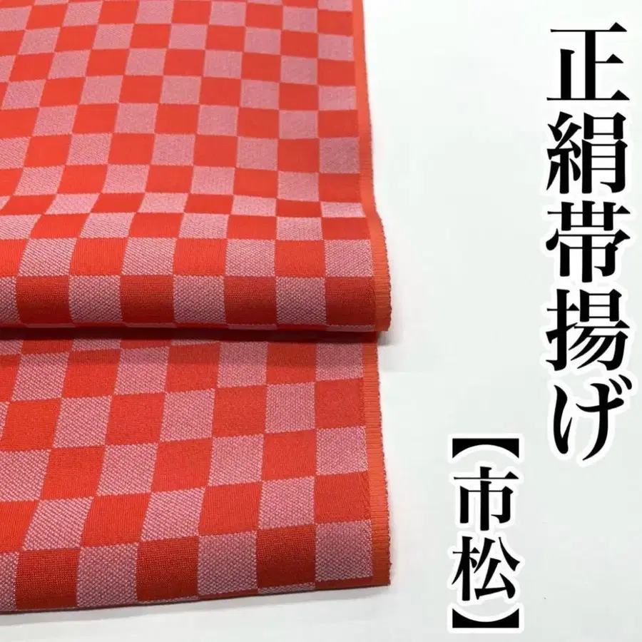차분한 오렌지 컬러 계열 격자무늬 오비 장식 천 순수 실크