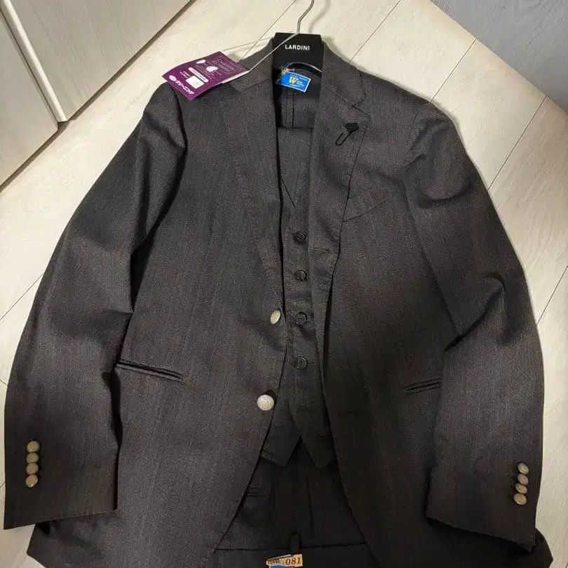라르디니 3피스 수트 48 [ 클리닝 완료, 행거, 부토니에르 포함 ]