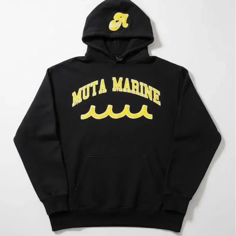 정면에는 MUTA MARINE의 로고가 빅 사이즈로 프린트되어 있으며, 후드 부분에는 ACANTHUS 로고가 프린트되어 있습니다.