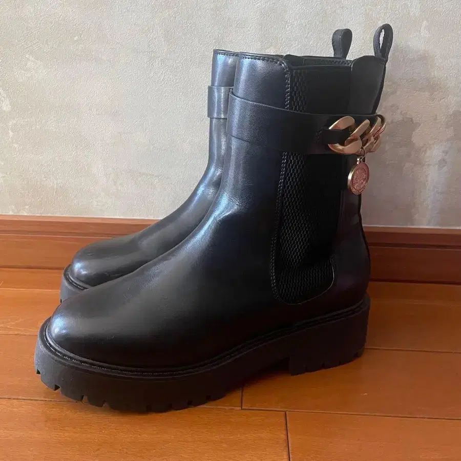 사이드 고어 부츠 블랙 통굽 골드 체인 포함