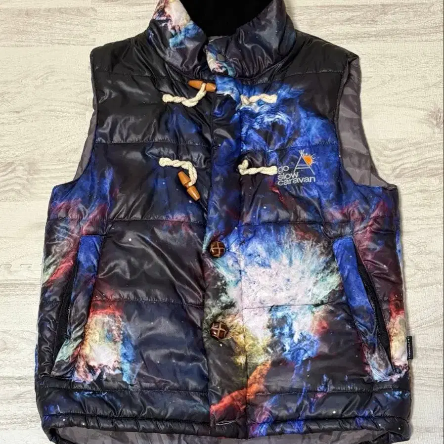 고 슬로우 카라반 우주 패턴 충전솜 다운 베스트