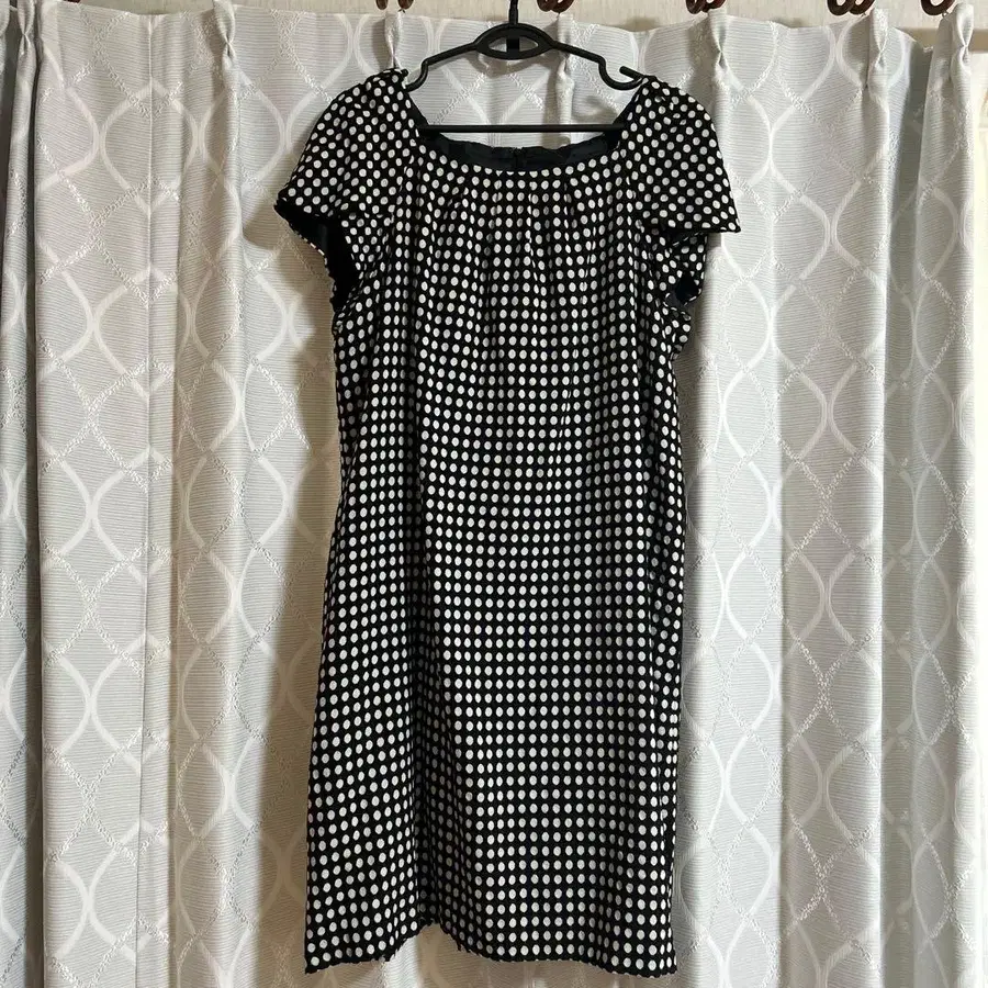 흑백 도트 패턴 반팔 무릎 기장 원피스
