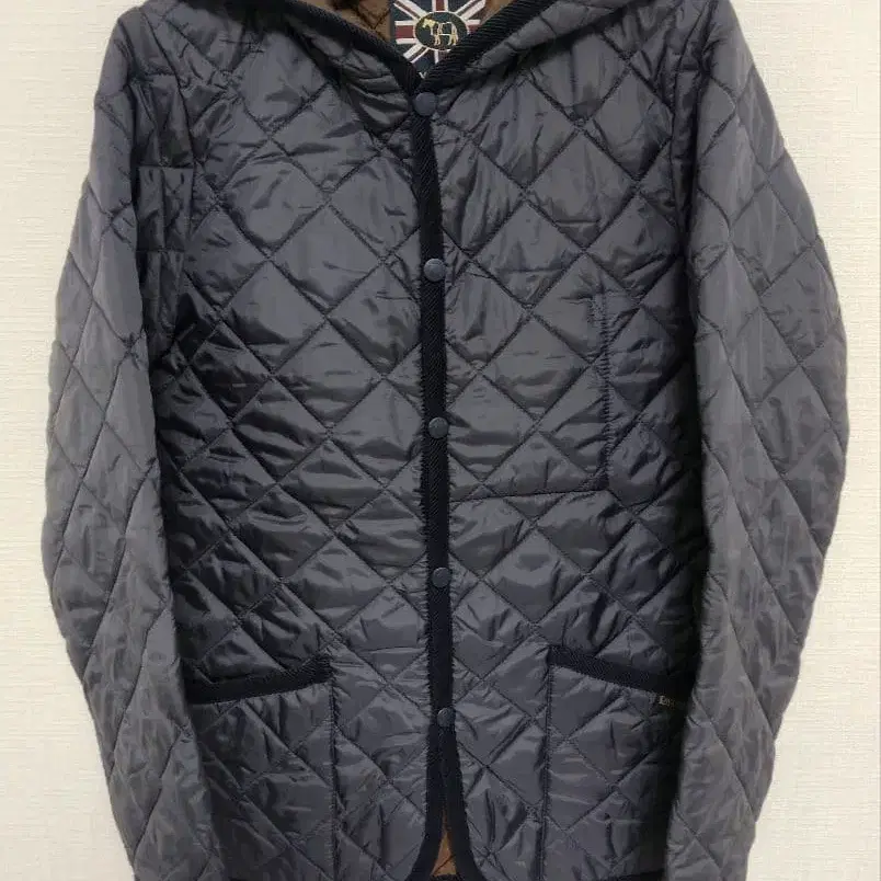 새상품급 라벤햄 퀼팅 자켓 38 후드 부착 네이비