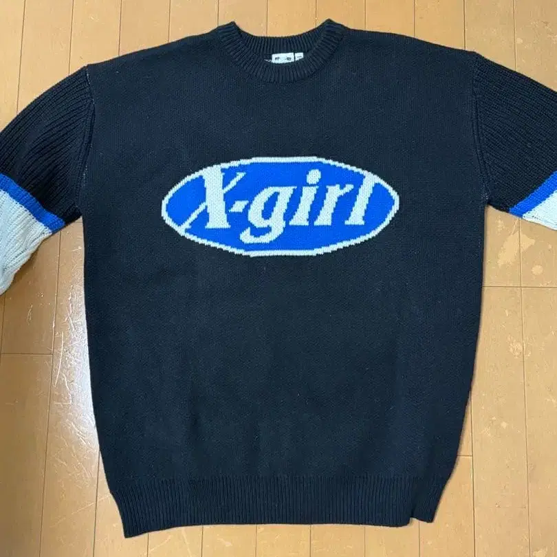 X-girl 로고 니트 트레이닝복 블랙/블루