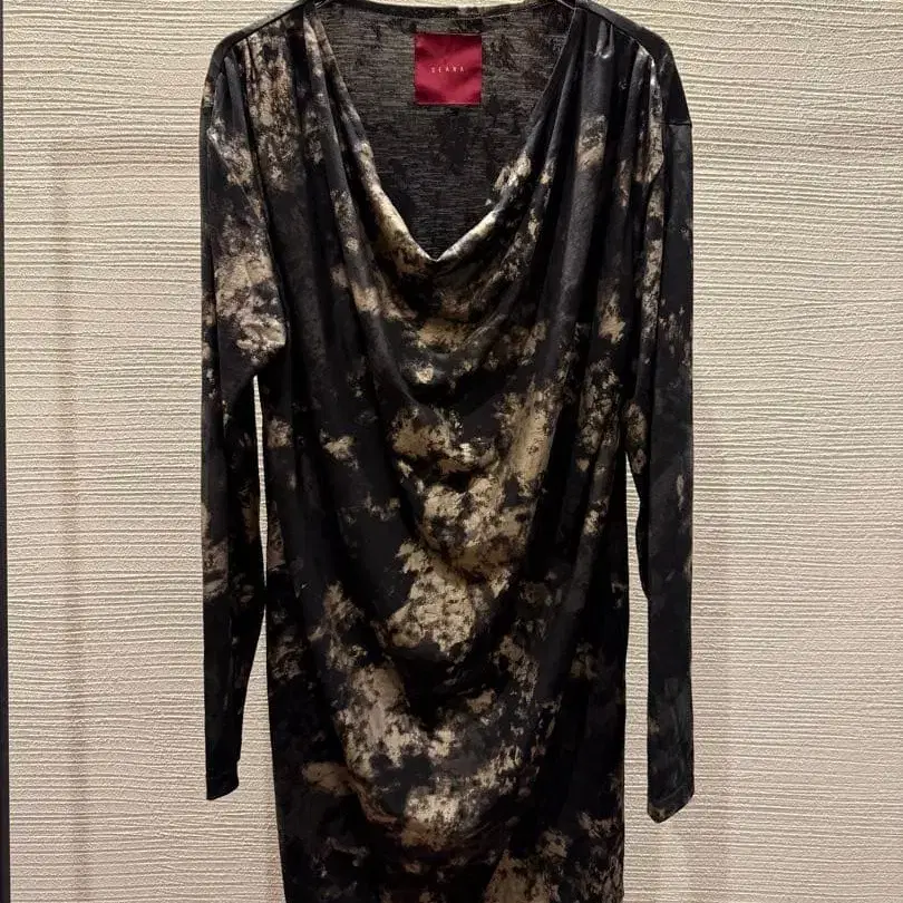 자동 번역되었어요. 원문보기SEANA / 글리터 올 패턴 드레이프 넥 티셔츠 골드x블랙