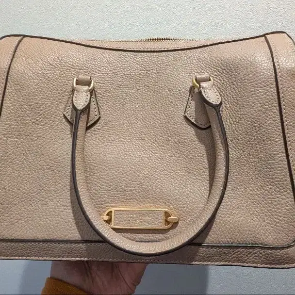 KATE SPADE 보스턴, 베이지 가죽 핸드백 골드 금장 장식