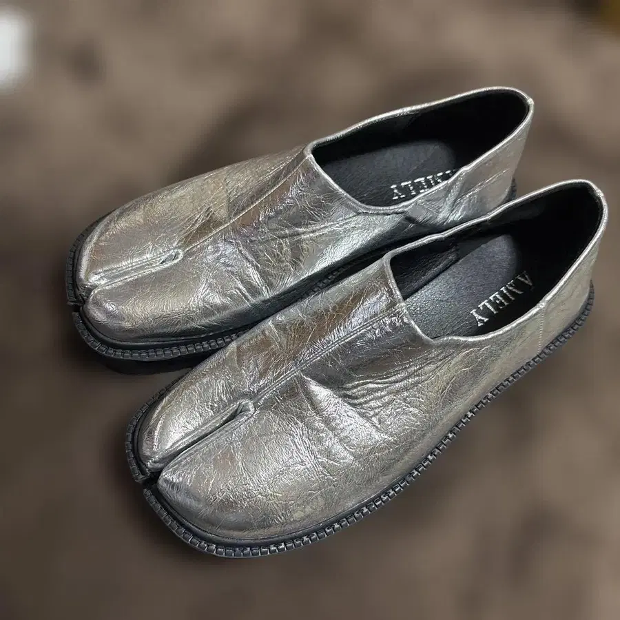 메탈릭 실버 플랫슈즈