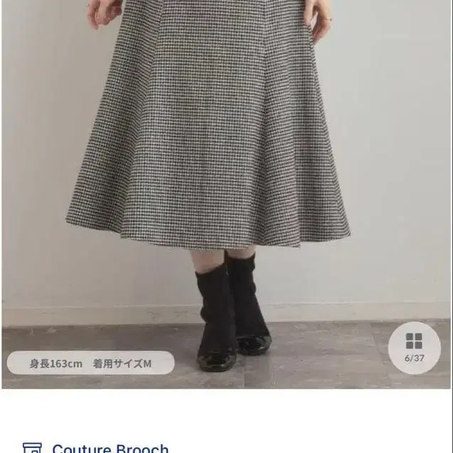택 포함 미사용 쿠튀르 브로치 하운드투스 체크 머메이드 플레어 스커트