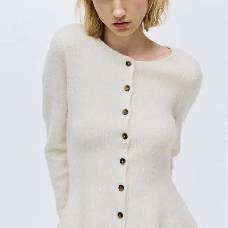 H&M 립 니트 페플럼 가디건