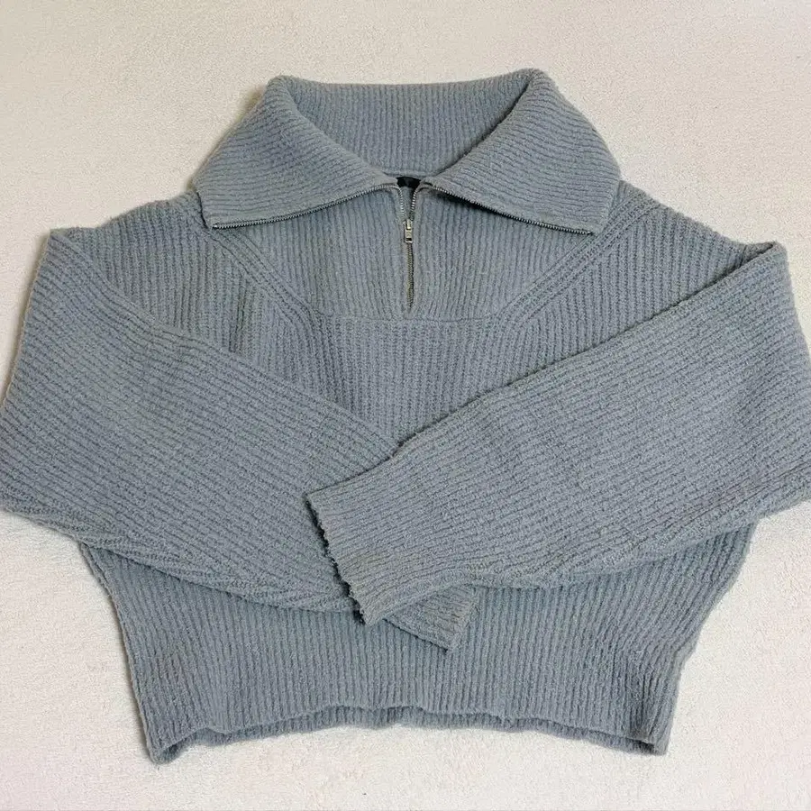 Heather 하프 지퍼 니트 라이트 블루