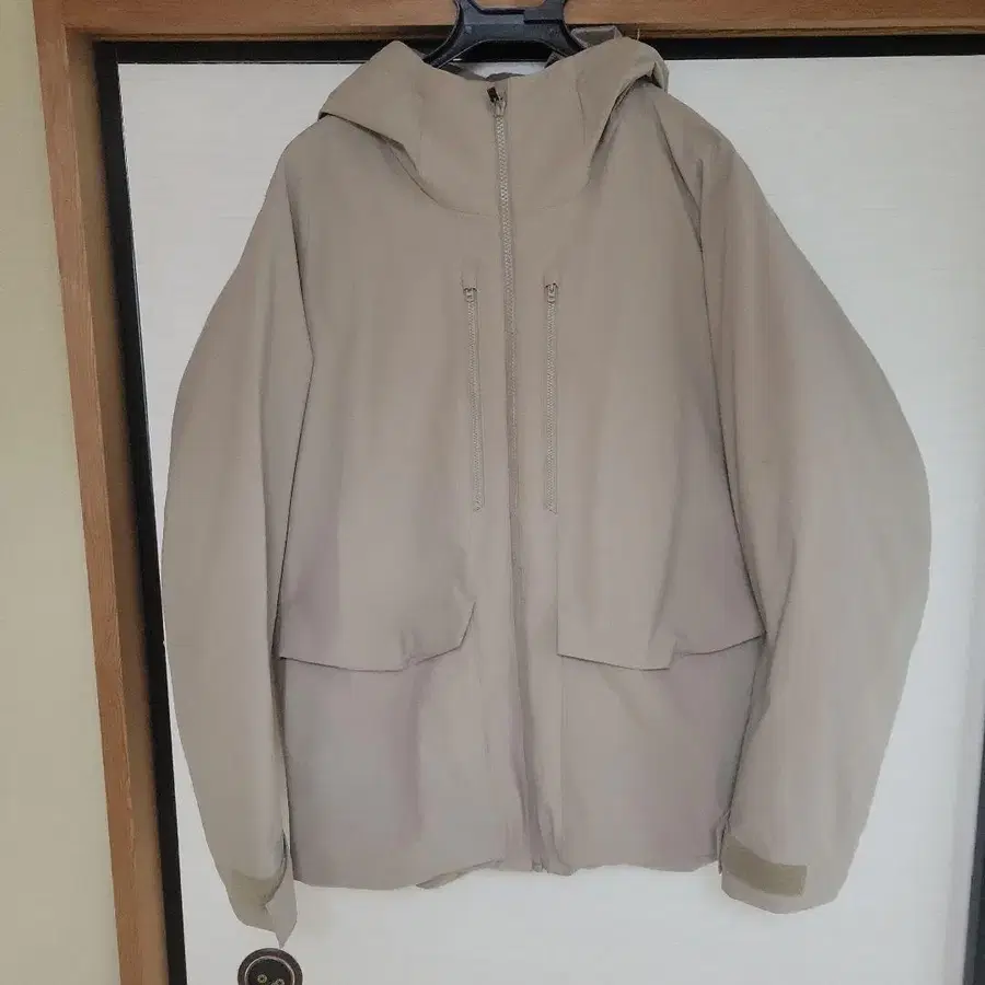 유니클로 베이지 후드 부착 하이브리드 다운 파카