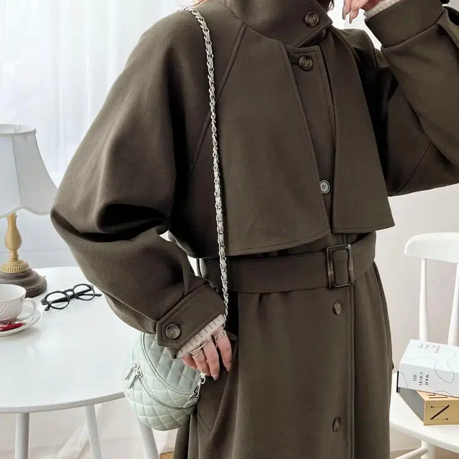 360도 고급스럽게 연출. 2way 스탠드 카라 볼륨 슬리브 롱 코트