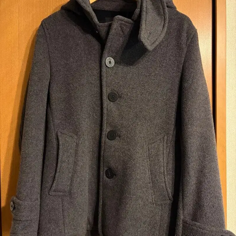 NANO UNIVERSE 후드 부착 코트 그레이 울