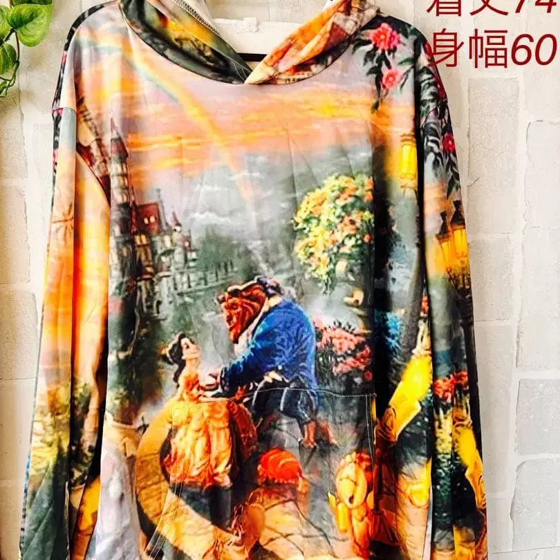 미녀와 야수 레어 디즈니 올 패턴 후드티 L