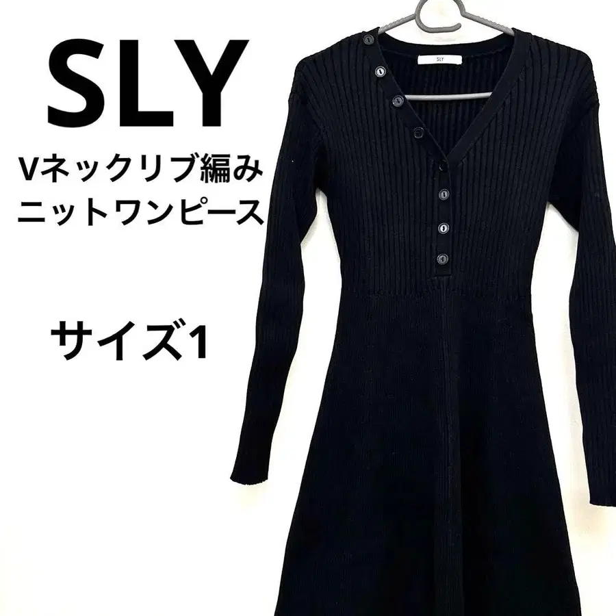 새상품급 SLY 블랙 리브 니트 원피스 긴팔 V넥 무릎 기장 신축성 좋음