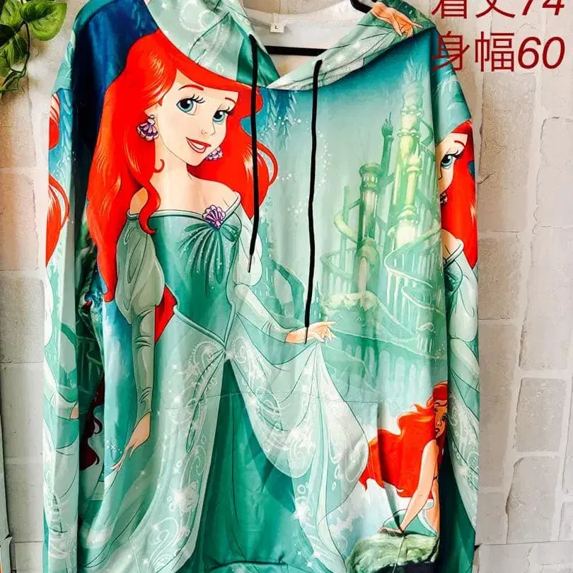 레어 디즈니 아리엘 올 패턴 후드티 L