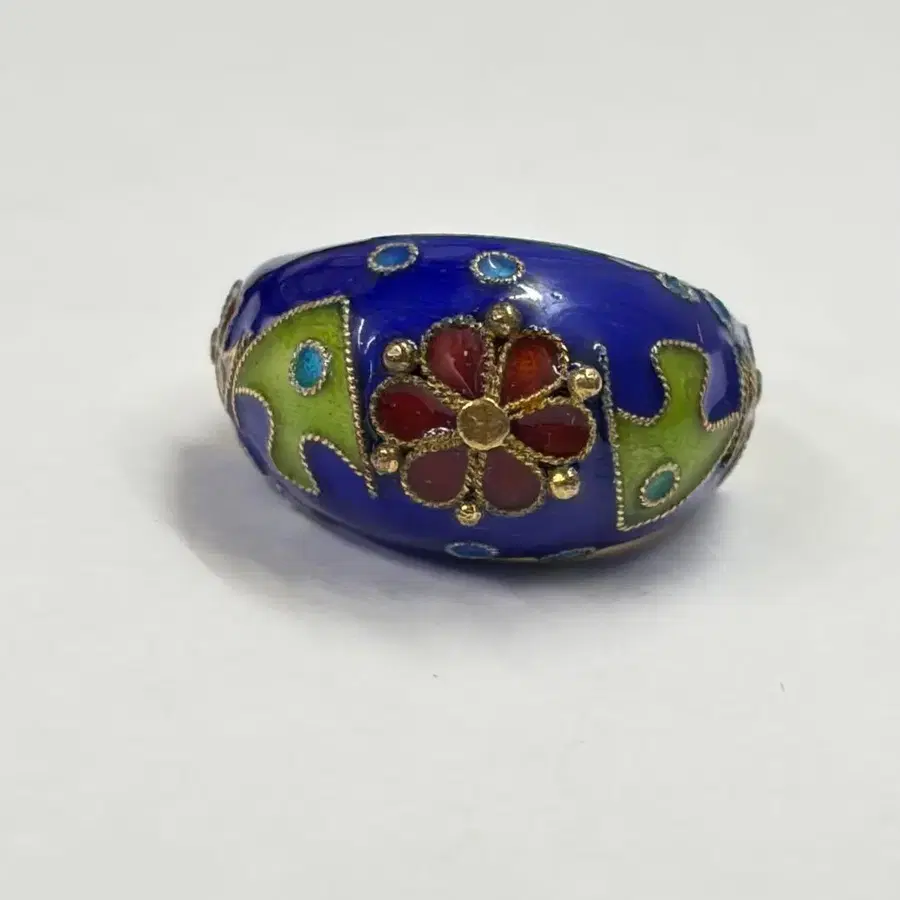 빈티지 1980년대 중국 SILVER 은세공 칠보 세공 반지 링
