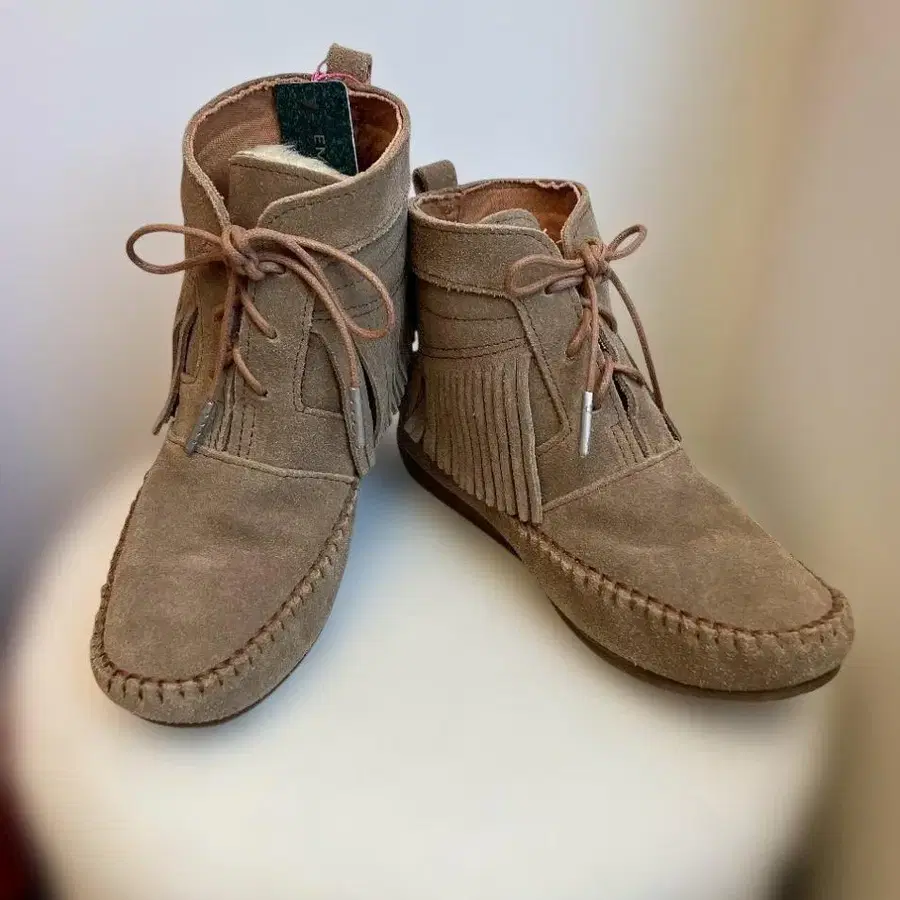 모카신 스타일 스티치로 따뜻하고 내추럴한 인상.