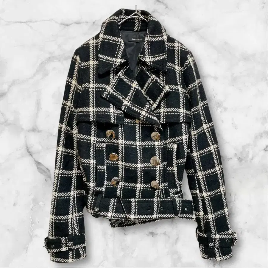 에고이스트 더블 브레스트 자켓 깅엄 체크 트위드풍 벨트