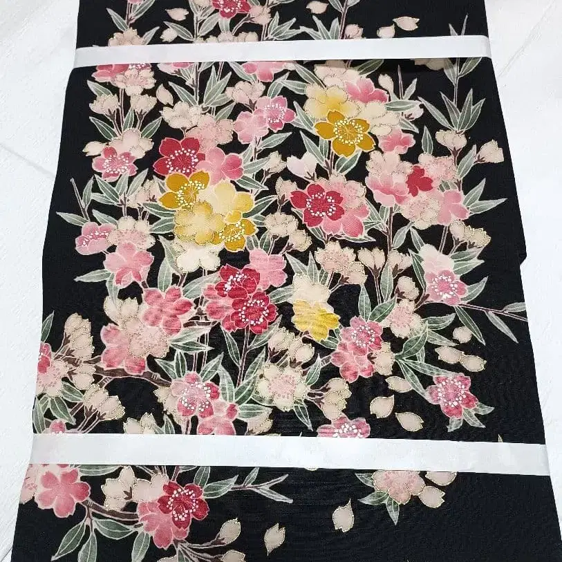 나고야 오비 오타이코 순수 실크 블랙 벚꽃