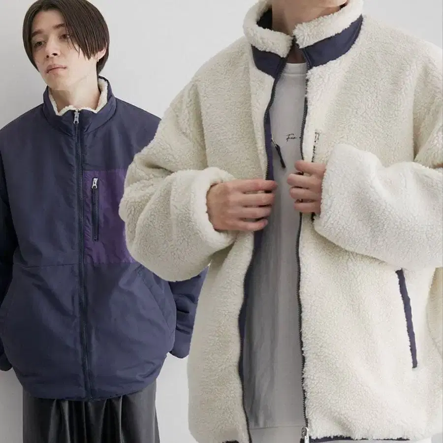 JUNRED 남성용 리버서블 보아 블루종 M 사이즈
