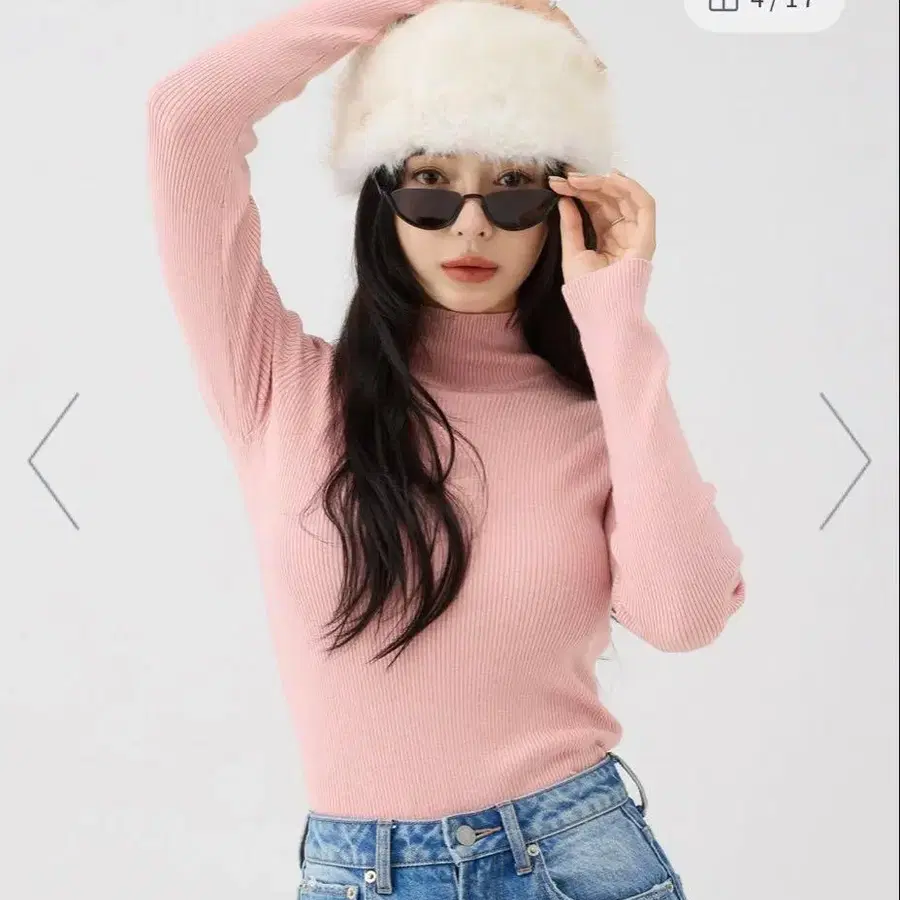 eimy istoire 핑크 보틀넥 리브 니트탑