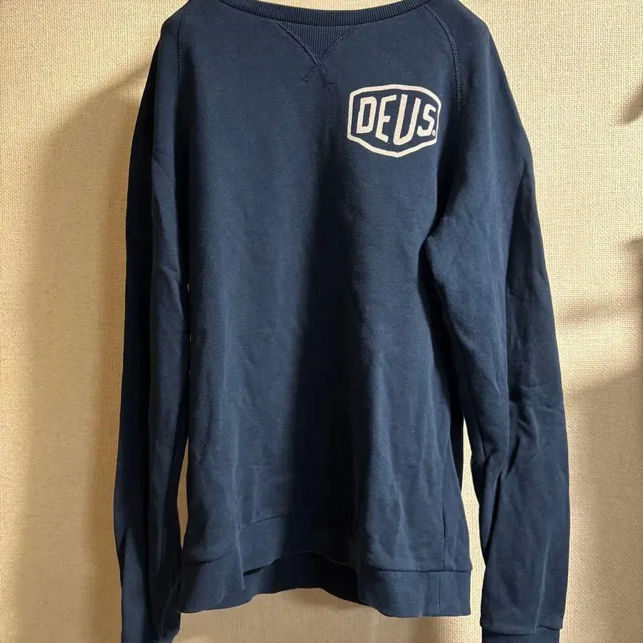 자동 번역되었어요. 원문보기네이비 Deus Machina 스웨트 셔츠, S 사이즈, 로고 디자인.