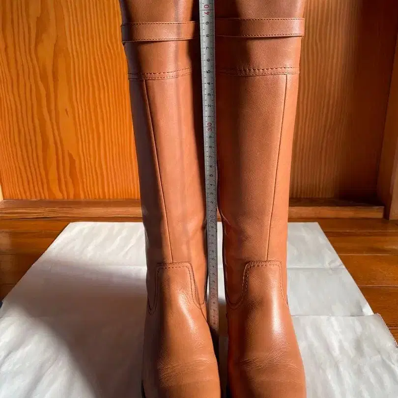 브라운 롱 부츠 사이드 지퍼 천연 가죽