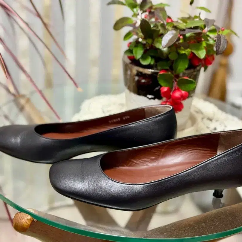오데트 e 오딜 블랙 가죽 발레 슈즈