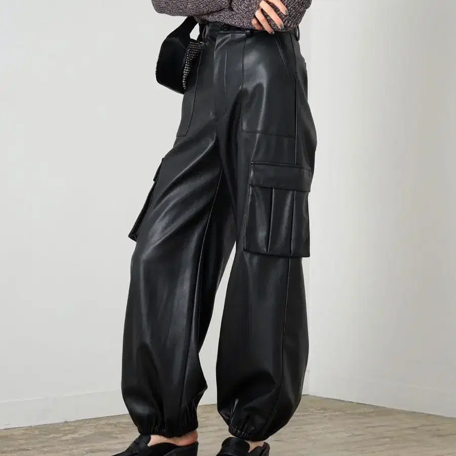 Ray BEAMS 레이빔즈 인조 가죽 카고 팬츠 블랙