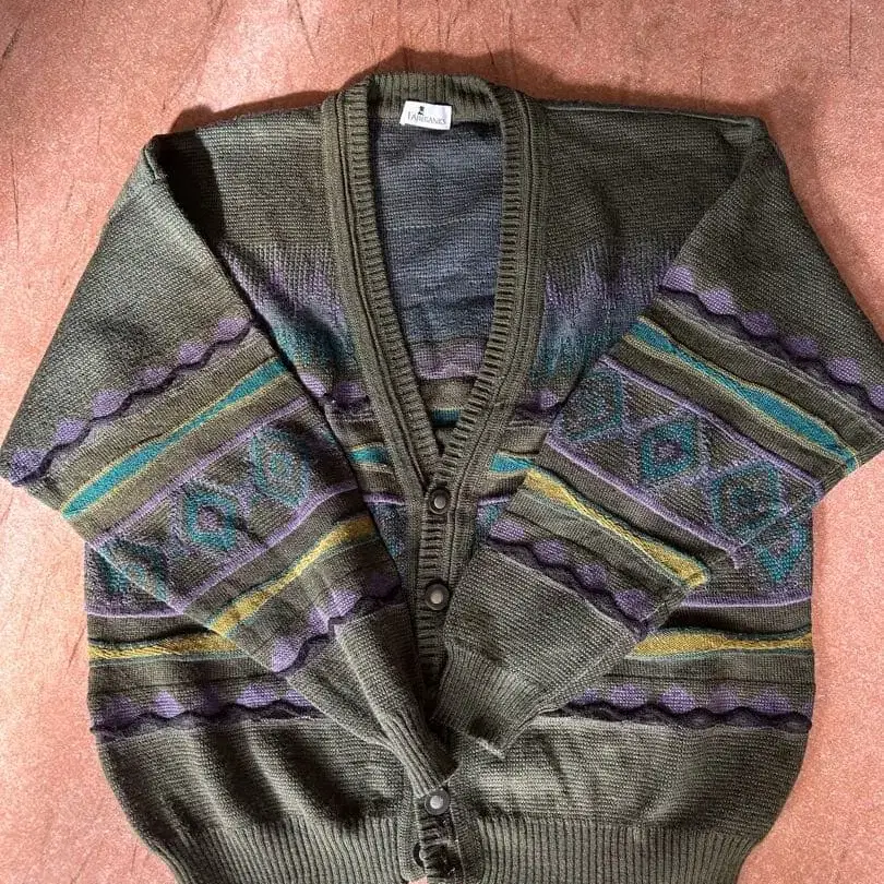 올리브 그린 기하학 패턴 가디건