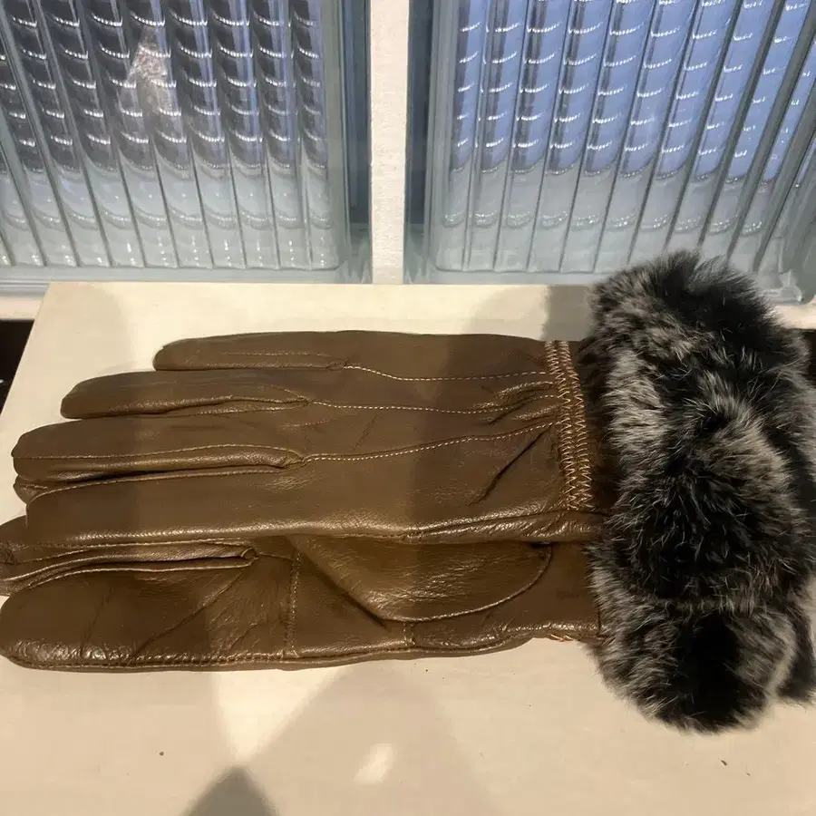 가죽 장갑 퍼 포함 브라운
