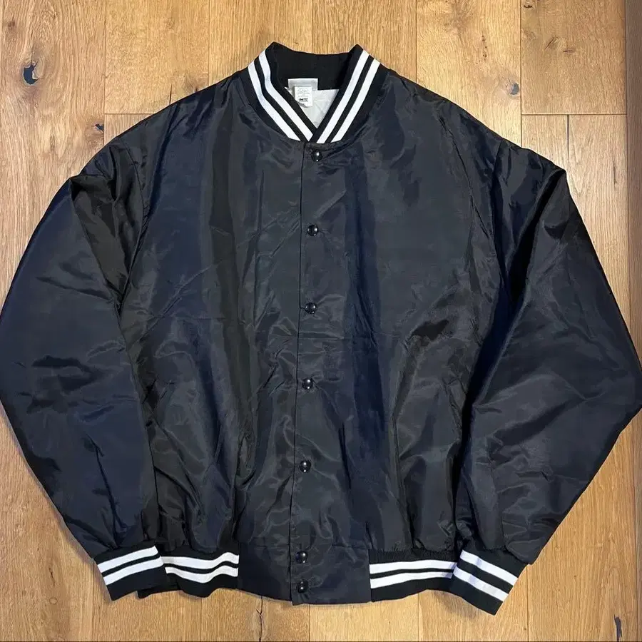 80s 90s USA제 풀스냅 바시티 자켓 L 블랙 코튼 폴리 야구