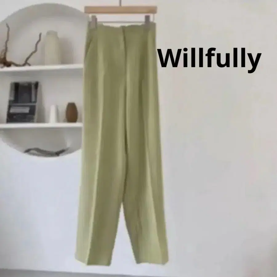윌프리 피스타치오 색상 그린 스트레이트 조젯 슬랙스