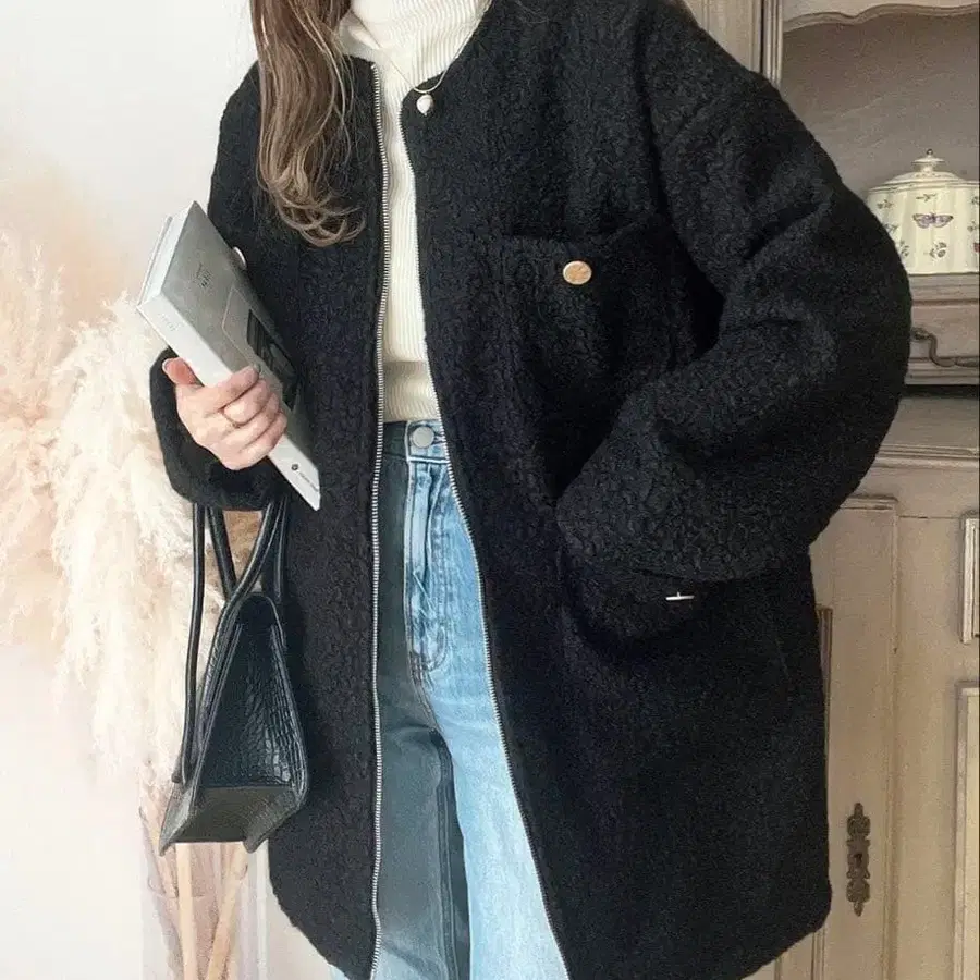milybilet 노카라 지퍼 코트 루프 트위드 M 미사용 새상품