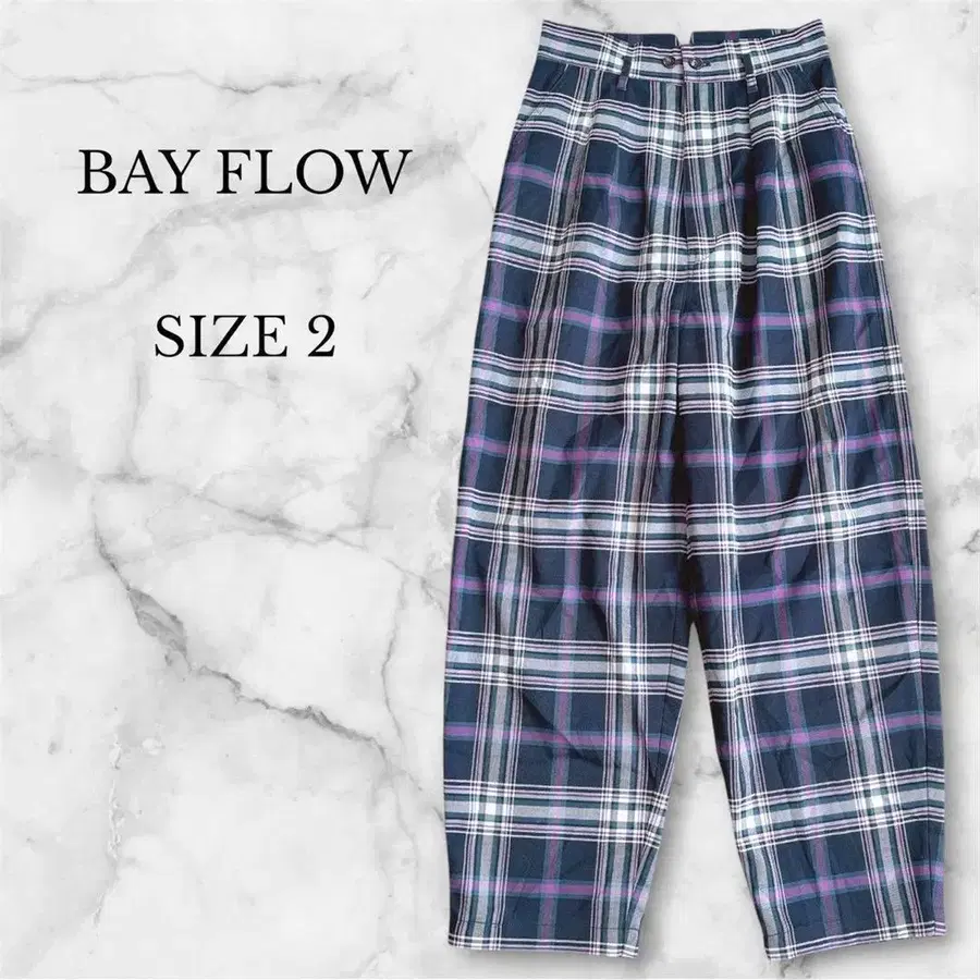 새상품급 베이플로우 슬랙스 와이드 팬츠 네이비 체크 무늬 루즈핏
