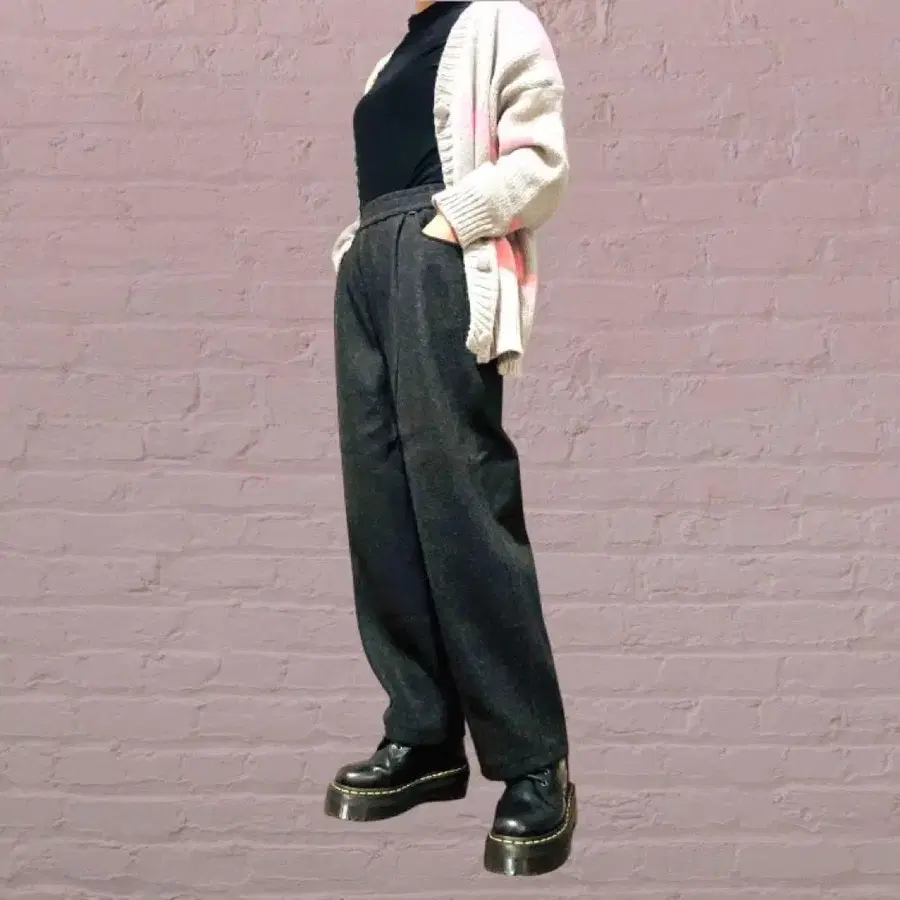 울 혼방 하이웨스트 와이드 팬츠 그레이