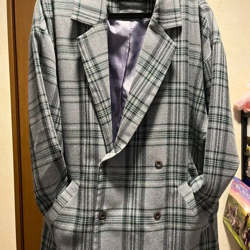 DOUBLE NAME 테일러드 자켓 그레이 그린체크