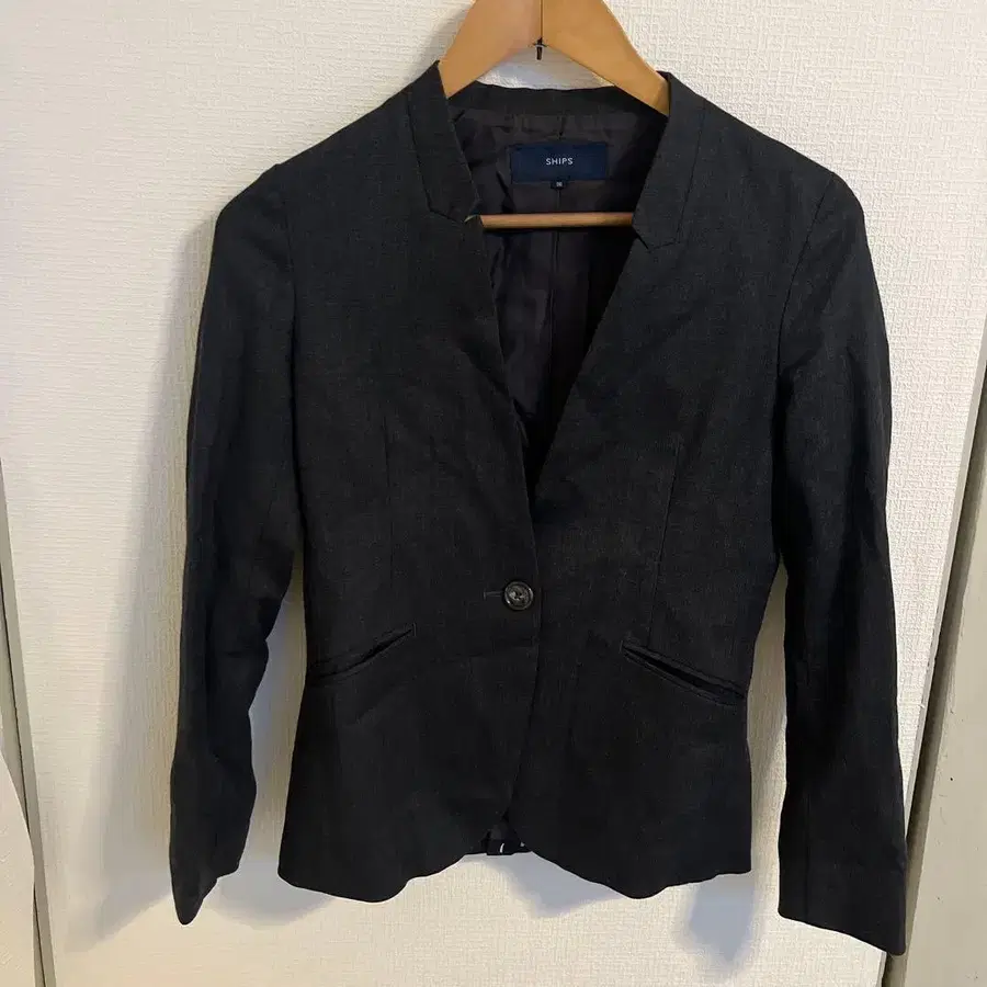 SHIPS 노카라 자켓 다크 그레이 울 혼방