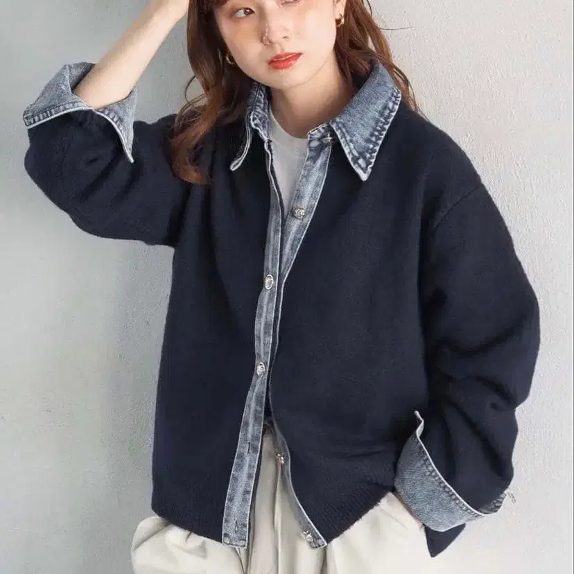 데님 도킹 가디건